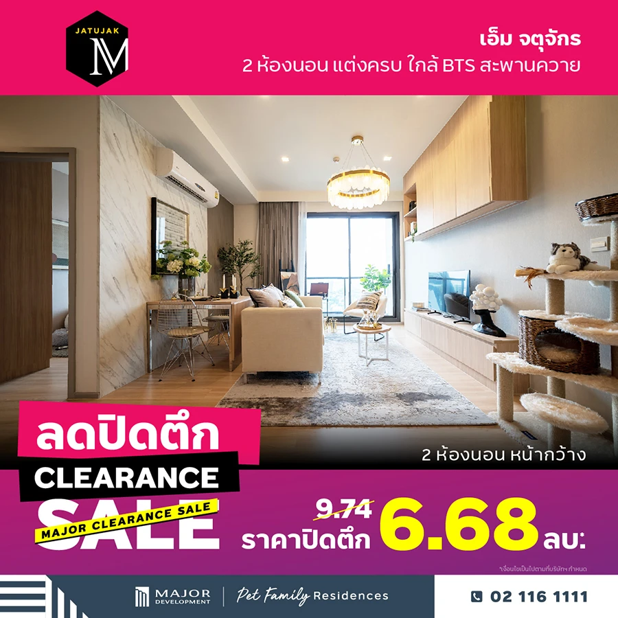 กรุงเทพฯ (7 กุมภาพันธ์2567) บริษัท เมเจอร์ ดีเวลลอปเม้นท์ จำกัด (มหาชน) ผู้นำด้านการพัฒนาธุรกิจอสังหาริมทรัพยร์ะดับลักชูรี และคอนโดมิเนียมเลี้ยงสัตว์ได้ (Pet Family Residences) ให้คุณใช้ชีวิตดีๆ ที่เลือกได้เอง จัดโปรโมชั่นสุดเอ็กซ์คลูซีฟกระตุ้นตลาดอสังหาริมทรัพย์ผ่านการนำเสนอห้องชุดพร้อมอยู่ กับโครงการคอนโดมิเนียมระดับลักชูรีพร้อมอยู่เลี้ยงสัตว์ได้บนพื้นที่ศักยภาพของกรุงเทพฯ ที่เชื่อมต่อพื้นที่ CBD ของกรุงเทพฯ ได้อย่างรวดเร็ว พบกับความคุ้มค่าแบบไม่เคยมีมาก่อน มอบส่วนลดสูงสุด 5 ล้านบาท* ฟรีทุกค่าใช้จ่ายวันโอนกรรมสิทธิ์*