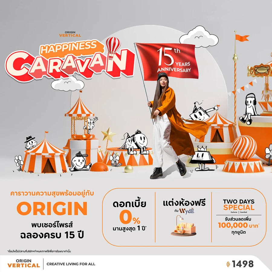 ออริจิ้น เวอร์ติเคิล (ORIGIN VERTICAL) ร่วมฉลองครบรอบ 15 ปี ออริจิ้น พร็อพเพอร์ตี้ ส่งความสุขผ่านแคมเปญ "HAPPINESS CARAVAN" บุกงานมหกรรมบ้านและคอนโดครั้งที่ 45 วันที่ 21-24 มี.ค. นี้ ที่บูธ ORIGIN ฮอลล์ 5 ศูนย์ประชุมแห่งชาติสิริกิติ์ เตรียมพบกับโครงการคอนโดมิเนียมพร้อมอยู่ราคาพิเศษฉลองครบรอบ 15 ปี บนทำเลศักยภาพทั่วกรุงเทพฯ และปริมณฑล ใกล้รถไฟฟ้าทุกสาย และคอนโด PET FAMILY เลี้ยงสัตว์ได้ มากถึง 27 โครงการ ส่วนลดสูงสุดถึง 4 ล้านบาท และ "ดีลลับยูนิตพิเศษ" เฉพาะภายในงานเท่านั้น!