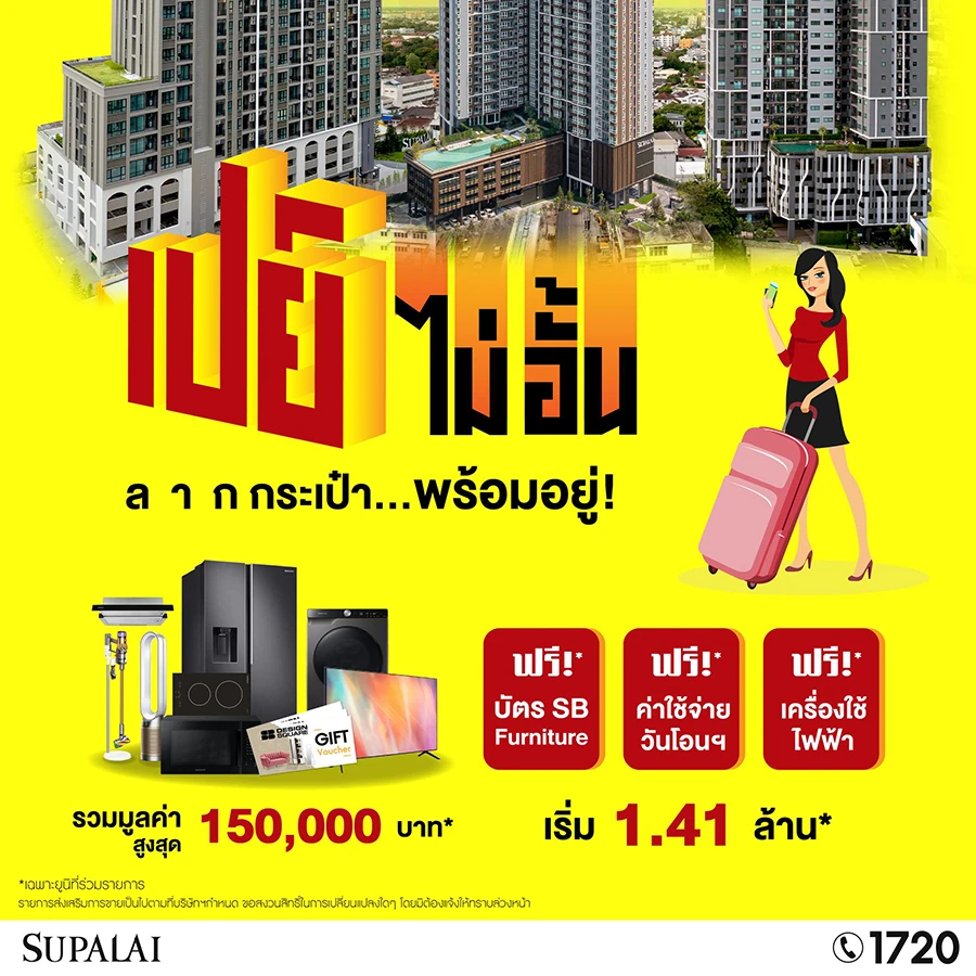 สอบถามรายละเอียดเพิ่มเติมได้ที่ โทร. 1720 เว็บไซต์ https://www.supalai.com/