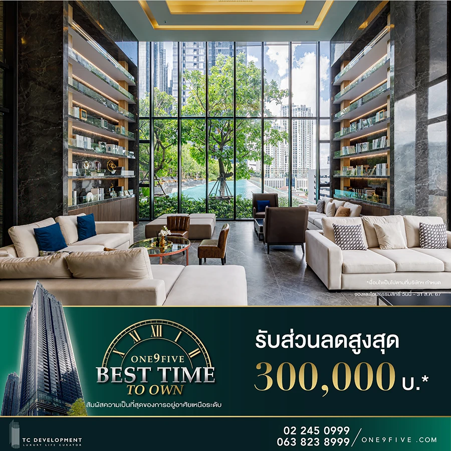 TC Development ผู้พัฒนาโครงการ One9Five อโศก-พระราม9 จัดแคมเปญพิเศษ One9Five Best Time To Own รับข้อเสนอที่ดีที่สุด สำหรับลูกค้าที่สนใจซื้อและโอนกรรมสิทธิ์ห้องชุด จะได้รับข้อเสนอพิเศษ ส่วนลดสูงสุด 300,000 บาท* และ ฟรี! ทุกค่าใช้จ่ายวันโอน พร้อมลุ้นรับ Lucky Draw ทุกยูนิต ตั้งแต่วันนี้ ถึง 31 สิงหาคม 2567