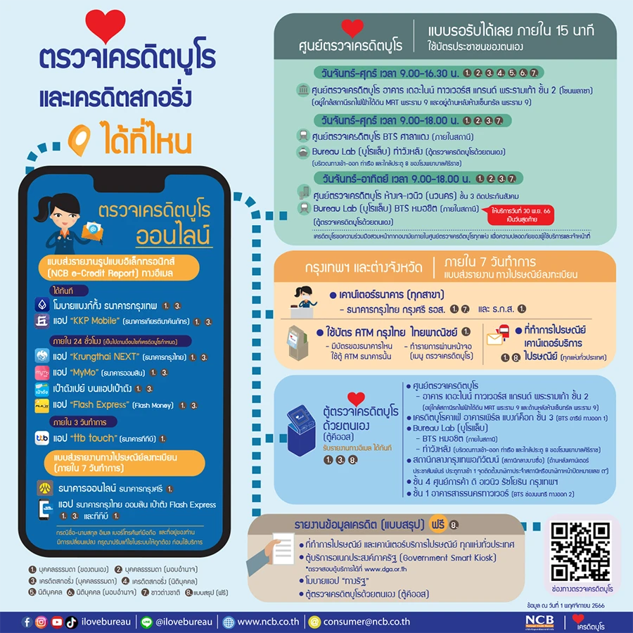 สุดท้ายนี้ ขอให้พวกเรา CheckRaka.com ทุกคนโชคดีเฮงๆ ในการขอสินเชื่อ หรือสมัครบัตรเครดิตนะคะ หากเราเข้าใจระบบการทำงานของเครดิตบูโรนี้แล้ว เราคงเข้าใจมากขึ้นว่าเครดิตบูโรไม่ได้เป็นคนปฏิเสธสินเชื่อเรา ธนาคาร หรือสถาบันการเงินต่างหากที่จะเป็นคนปฏิเสธเราโดยอาศัยข้อมูลของเครดิตบูโรมาประกอบการพิจารณา หากมีข้อสงสัยสามารถสอบถามข้อมูลเพิ่มเติมได้ที่ consumer@ncb.co.th