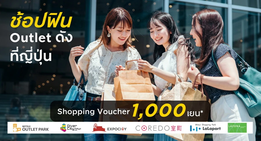 รายละเอียดโปรโมชัน : ช้อปเอ้าท์เล็ทดังที่ Japan รับส่วนลดสูงสุด 10% และ Voucher 500 เยน