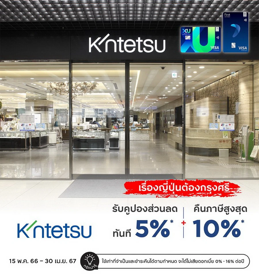 รายละเอียดโปรโมชัน : สิทธิพิเศษที่ห้าง Kintetsu Department Store Main Store Abeno Harukas สิทธิพิเศษสำหรับบัตรเครดิตกรุงศรีเฟิร์สช้อยส์ วีซ่า แพลทินัม และเอ็กซ์ยู บัตรเครดิต ดิจิทัล รับคูปองส่วนลดทันที 5%* + คืนภาษีสูงสุด10%*