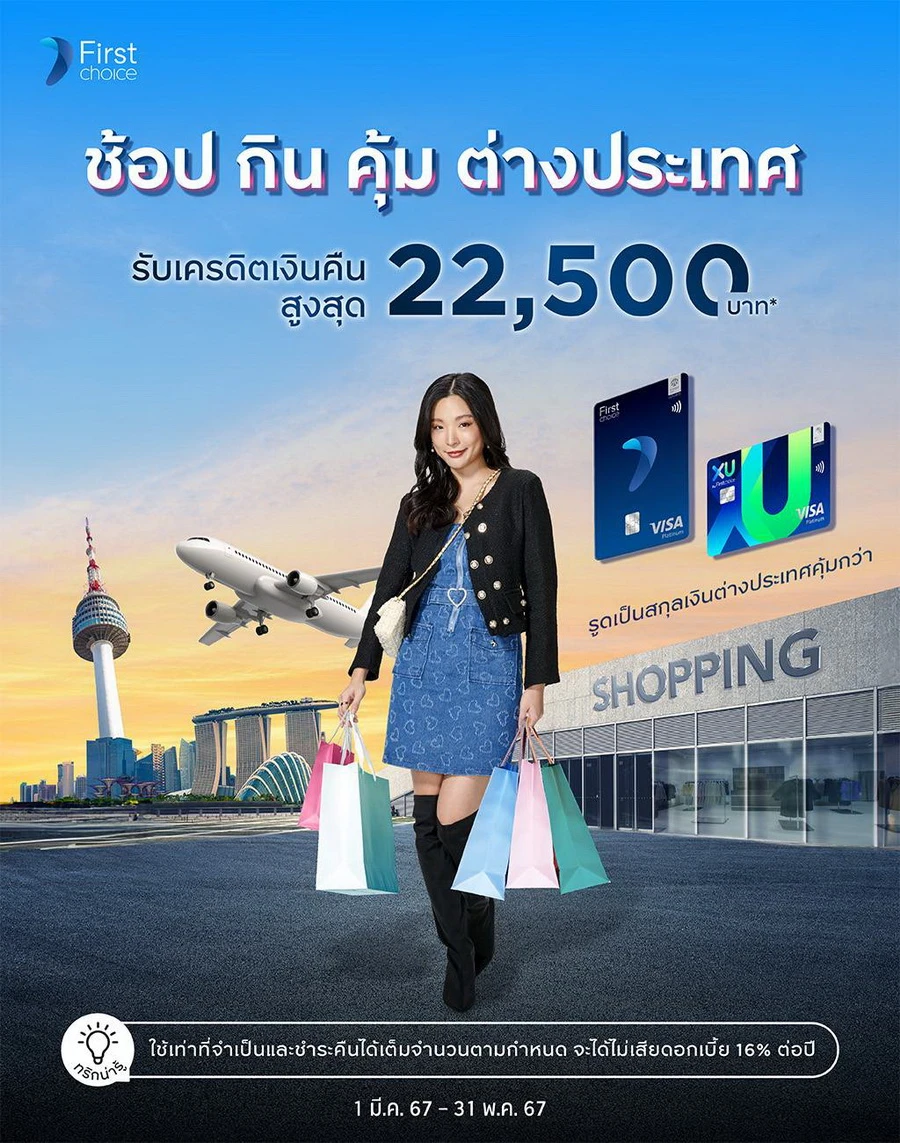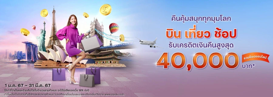 รายละเอียดโปรโมชัน : เที่ยวฟินทั่วโลก รูดสกุลเงินต่างประเทศ รับแคชแบ็คสูงสุด 22,500 บาท* กิน เที่ยว ช้อป ที่เมืองนอก หรือช้อปออนไลน์ เป็นสกุลเงินต่างประเทศ รูดแล้วได้เครดิตเงินคืนสูงสุด 22,500 บาท* ตลอดรายการ เมื่อมียอดใช้จ่ายตามเงื่อนไขฯ