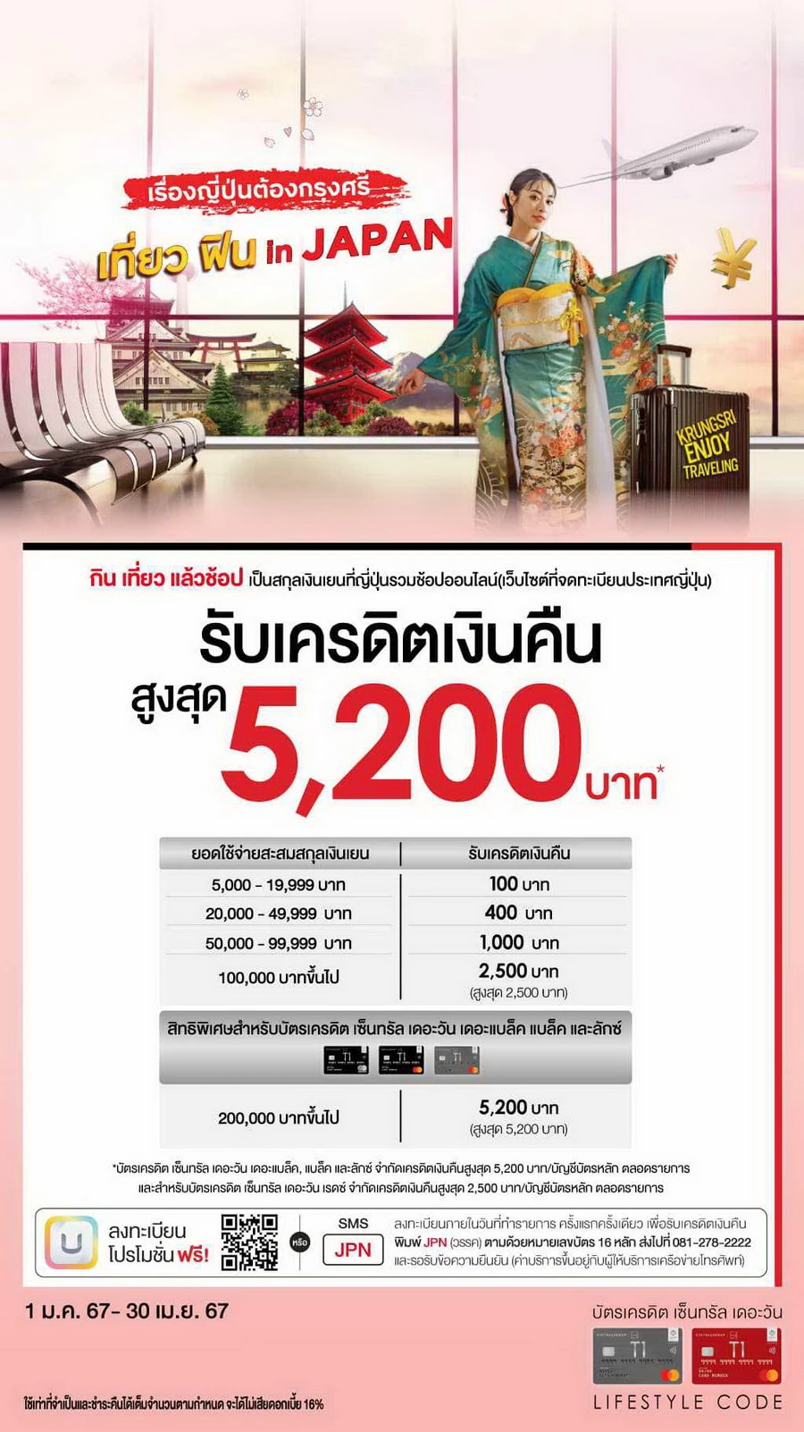 รายละเอียดโปรโมชัน : พร้อมเที่ยวญี่ปุ่น กับบัตรเครดิต กรุงศรี ทุกประเภท บัตรเดียวครบคุ้ม รวมสิทธิพิเศษครอบคลุมทุกการเดินทางท่องเที่ยวประเทศญี่ปุ่น