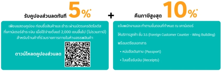 ต่อที่ 1: รับคูปองส่วนลด 10%* + รับการยกเว้นภาษีส่วนลดสูงสุด 10%* (Tax Refund)