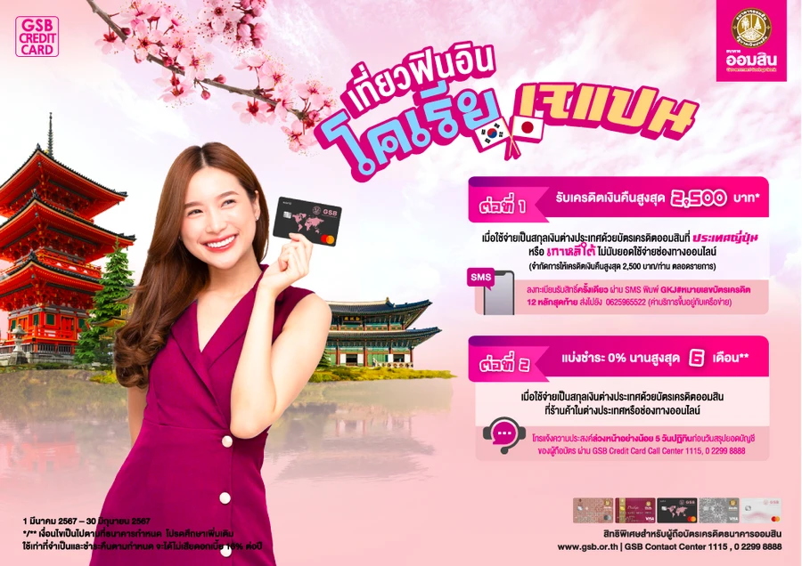 *ต่อที่ 1 : รับเครดิตเงินคืน เมื่อใช้จ่ายเป็นสกุลเงินต่างประเทศผ่านบัตรเครดิตธนาคารออมสิน ณ ประเทศญี่ปุ่น หรือ เกาหลีใต้
