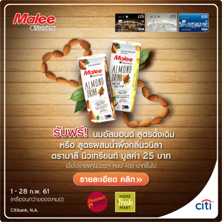 รายละเอียดโปรโมชั่น : รับฟรี! นมอัลมอนด์ สูตรดั้งเดิม หรือ สูตรผสมน้ำผึ้งกลิ่นวนิลา ตรามาลี นิวเทรียนท์ มูลค่า 25 บาท