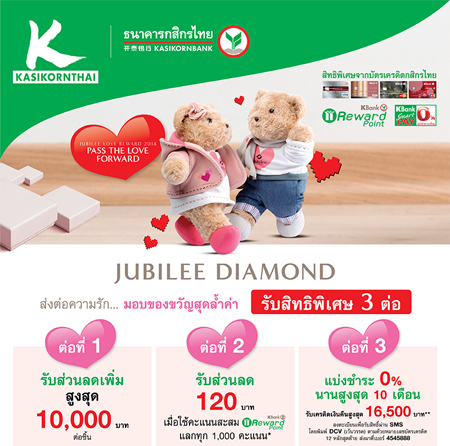 รายละเอียดโปรโมชั่น : Jubilee Diamond ส่งต่อความรัก... มอบของขวัญสุดล้ำค่า รับสิทธิพิเศษ 3 ต่อ