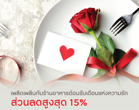 รายละเอียดโปรโมชั่น : เพลิดเพลิน กับร้านอาหารต้อนรับเดือนแห่งความรัก รับส่วนลดสูงสุด 15% ณ ร้านอาหารชั้นนำที่ร่วมรายการ