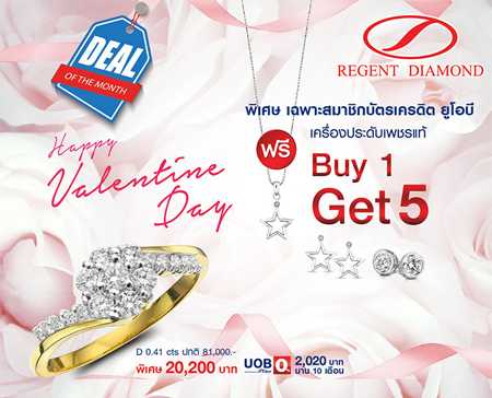 รายละเอียดโปรโมชั่น : Happy Valentine's Day Buy 1 Get 5 พร้อมผ่อนชำระ 0% ที่ REGENT DIAMOND