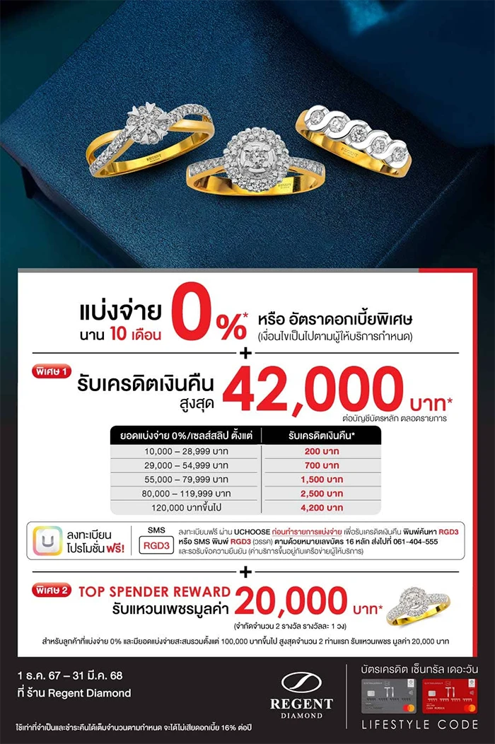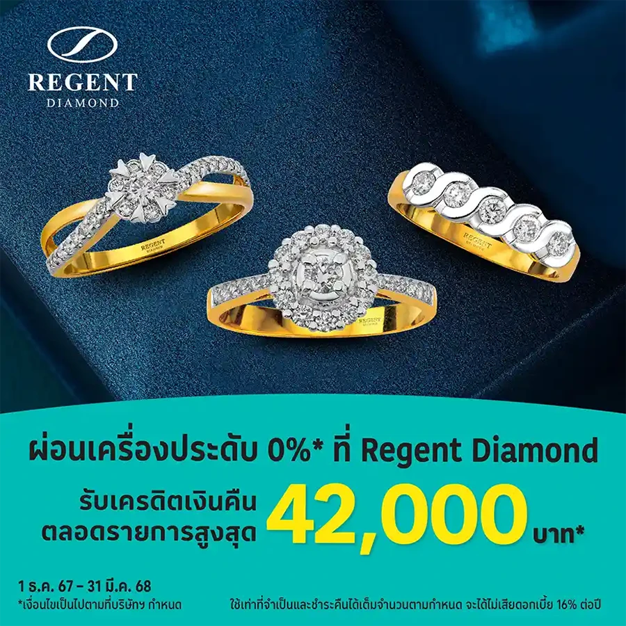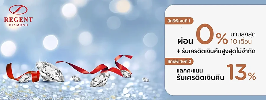 ผ่อนเครื่องประดับ 0%* นานสูงสุด 10 เดือน ที่ Regent Diamondและช่องทางออนไลน์