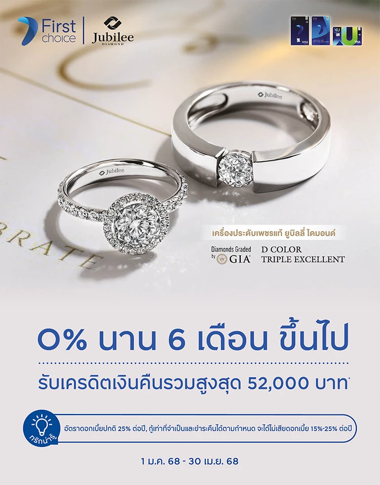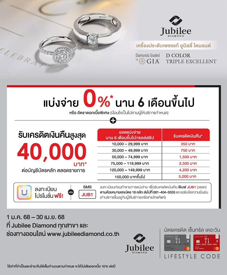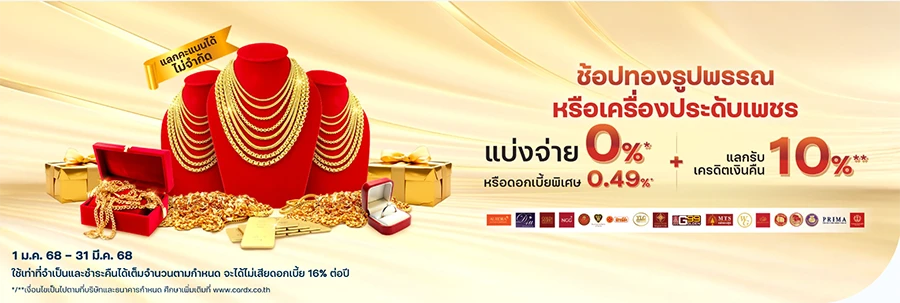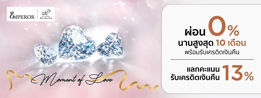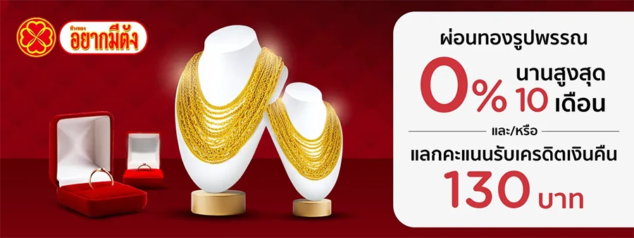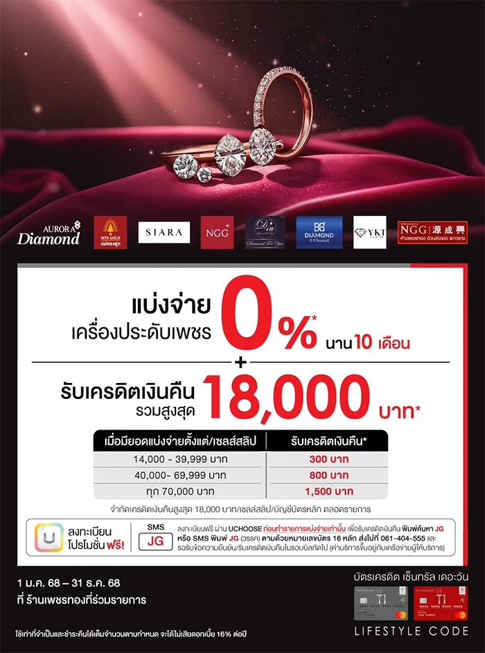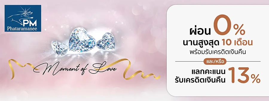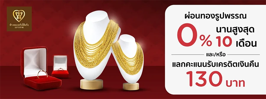 - แบ่งชำระ 0% 10 เดือน: Gold Mark, Jubilee, Millennium Star, Regent Diamond, Leisure Social, Premium Diamond / Emperor Diamond, Blue River Jewelry