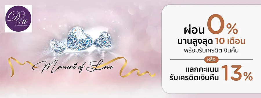 - ร้านเพชร ไดมอนด์ ฟอร์ ยู, แบ่งชำระเครื่องประดับเพชร ดอกเบี้ย 0% นาน 10 เดือน วันที่ 1 มกราคม 2568 – 31 มีนาคม 2568