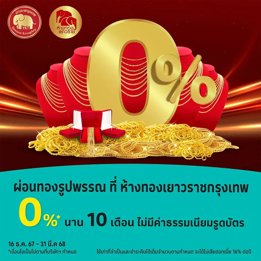 - ห้างทองเยาวราชกรุงเทพ ห้างทองเยาวราช ห้างทองเยาวราชออมทอง ที่ร่วมรายการ แบ่งชำระดอกเบี้ย 0% นาน 10 เดือน วันที่ 1 มกราคม 2568 – 31 มีนาคม 2568