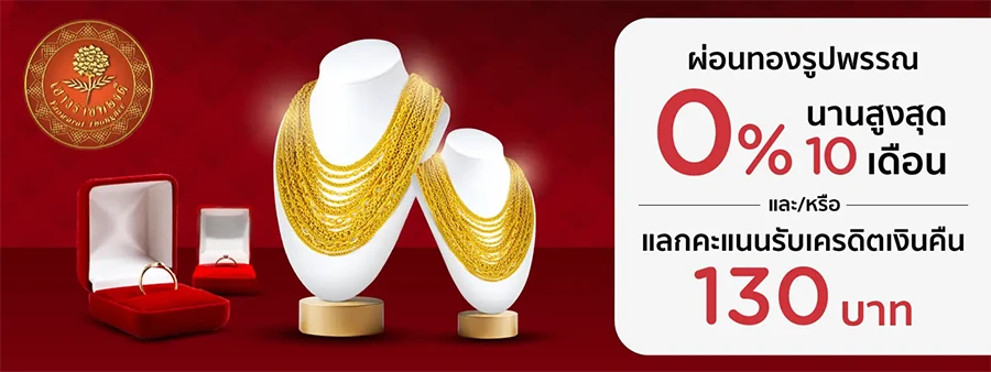 ซื้อทองรูปพรรณ หรือเครื่องประดับเพชร พร้อมแบ่งชำระดอกเบี้ย 0% นานสูงสุด 10 เดือน ในวันที่ร้านค้าจัดรายการส่งเสริมการขายดอกเบี้ย 0% หรือดอกเบี้ยพิเศษสำหรับลูกค้า 0.49% นาน 3, 4, 6 หรือ 10 เดือน