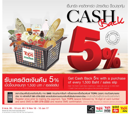 สถานที่ร่วมรายการ : เซ็นทรัล ฟู้ด ฮอลล์, ท็อปส์ มาร์เก็ต, ท็อปส์ ซูเปอร์สโตร์, ท็อปส์ เดลี่ และซูเปอร์คุ้ม ทุกสาขา