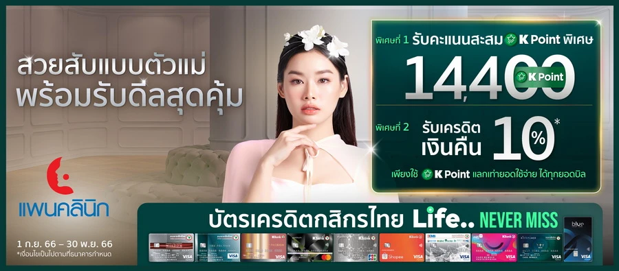 รายละเอียดโปรโมชัน :  ​สิทธิพิเศษสำหรับบัตรเครดิตกสิกรไทย สวยสับแบบตัวแม่ พร้อมรับดีลสุดคุ้ม ห้ามพลาด!
