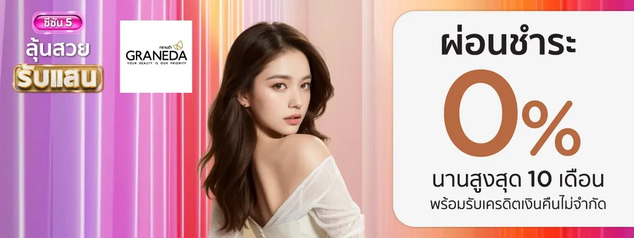 รูดแบบไหนก็ได้ลุ้น ลุ้นรับเครดิตเงินคืน รวมมูลค่า 1 ล้านบาท พิเศษ ผ่อนชำระ 0% นานสูงสุด 10 เดือน พร้อมรับเครดิตเงินคืนไม่จำกัด ณ Graneda Clinic
