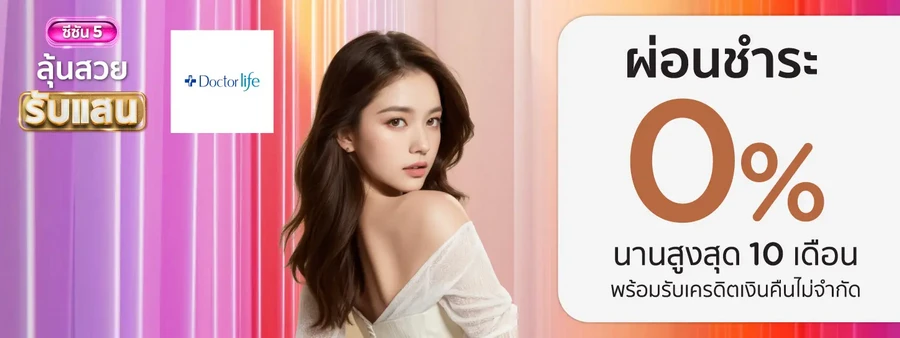 รูดแบบไหนก็ได้ลุ้น ลุ้นรับเครดิตเงินคืน รวมมูลค่า 1 ล้านบาท พิเศษ ผ่อนชำระ 0% นานสูงสุด 10 เดือน พร้อมรับเครดิตเงินคืนไม่จำกัด ณ DoctorLife Clinic