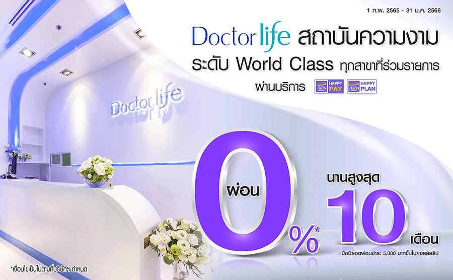 รายละเอียดโปรโมชัน : ผ่อนชำระค่าสินค้าและบริการที่ Doctor life clinic ด้วยบัตรสมาชิกอิออน ผ่านบริการสินเชื่อ อิออน แฮปปี้ เพย์ และบัตรเครดิตอิออน ผ่านบริการสินเชื่อ อิออน แฮปปี้ แพลน รับอัตราดอกเบี้ย 0% นานสูงสุด 10 เดือน
