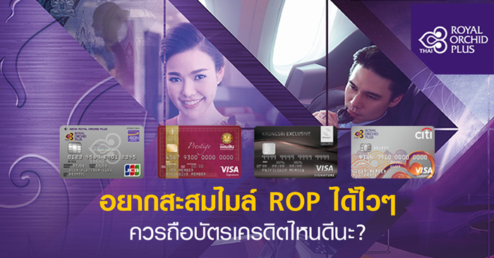 มีแฟนเพจหลายคนถามกันเข้ามาเยอะมากว่า ถ้าอยากจะสะสมไมล์ ROP (Royal Orchid Plus) ของสายการบินไทย (Thai Airways) ให้ได้ไวๆ ควรจะถือบัตรเครดิตใบไหนดี? วันนี้เรามีคำตอบมาให้เพื่อนๆ กันค่ะ โดยเราจะเลือกเฉพาะบัตรเครดิตที่ให้คะแนนสะสมในอัตราพิเศษๆ มาพูดคุยกัน ลองมาดูกันว่าบัตรเครดิตใบไหนเหมาะสม และคู่ควรแก่การมีไว้สำหรับปั๊มไมล์กันบ้าง? (ถ้าใครอยากดูเรทการแลกคะแนนสะสมของสายการบินอื่นๆ คลิกที่นี่!)