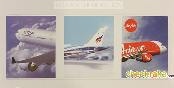 ทุกการใช้จ่าย 25 บาทมีค่าเท่ากับ 1 คะแนน แลกคะแนนเป็นไมล์ได้สองสายการบิน