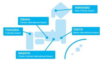 - ประเทศญี่ปุ่น : ทั้งหมด 28 สนามบินหลัก (ดูเพิ่มเติม)