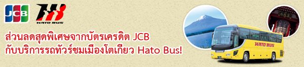 - ส่วนลดสุดพิเศษจากบัตรเครดิต JCB กับบริการรถทัวร์ชมเมืองโตเกียว Hato Bus!