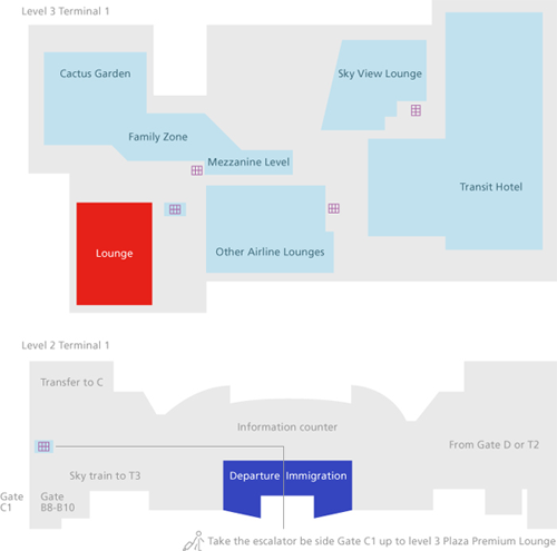 - ประเทศสิงคโปร์ : สนามบินหลัก Singapore Changi Airport ทั้งหมด 2 แห่ง คือ Plaza Premium Lounge และ The Green Market (TGM)