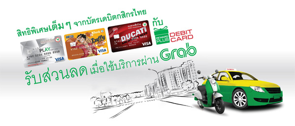 - ครั้งแรก ใช้ฟรี 100 บาท ใส่รหัส "KDEBITNEW" เมื่อชำระค่าบริการผ่านด้วย GrabPay เป็นครั้งแรก (จำกัด 1ครั้ง/ ท่าน จำกัด 35,000 สิทธิ์ตลอดโครงการ)