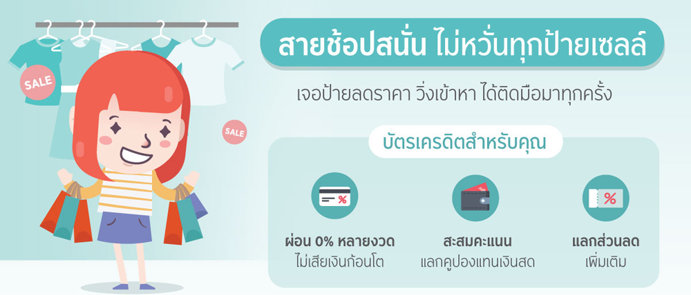 อีกหนึ่งในโปรโมชั่นที่หนุ่มสาวขาช้อปชื่นชอบกันมากก็คือ โปรโมชั่นผ่อน 0% ไม่ว่าสินค้านั้นจะราคาแพงแค่ไหน แต่ถ้าหากสามารถทำการแบ่งจ่ายเป็นงวดๆ ได้โดยไม่ต้องเสียเงินก้อนโตแล้วล่ะก็ บอกเลยว่างานนี้พร้อมลุยเต็มที่ค่ะ หรือการสะสมคะแนนเพื่อแลกรับของกำนัล ส่วนลดเพิ่มเติม คูปองเงินสดต่างๆ สายช้อปที่มีบัตรเครดิตประเภทนี้ ถ้ารู้จักใช้ให้เป็น ก็จะช่วยบริหารเงินและการใช้จ่ายให้มีประสิทธิภาพมากขึ้น (ดูบทความเพิ่มเติม)