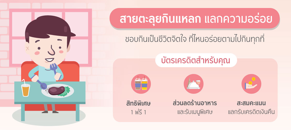 นอกจากจะได้อิ่มอร่อยกับร้านอาหารสุดโปรดแล้ว ยังจะได้รับส่วนลดพร้อมรับคะแนนสะสมพิเศษที่มากกว่า หากใช้บัตรเครดิตที่เหมาะกับไลฟ์สไตล์ของคุณ เช่น สิทธิ์รับเมนูพิเศษ หรือส่วนลดต่างๆ จากร้านอาหาร ส่วนใครที่ไม่ชอบกินข้าวนอกบ้าน แต่ชอบซื้อของมาทำกินเองที่บ้าน ก็สามารถใช้แต้มที่ได้จากการใช้จ่ายแลกเป็นคูปองเงินสดจากยอดใช้จ่ายที่ Supermarket ต่างๆ ได้เหมือนกัน ไม่ว่าจะเป็นสายกินแบบไหนก็อิ่มอร่อยแบบสุดคุ้มได้ เรียกได้ว่าช่วยให้คุณประหยัดค่าใช้จ่ายเกี่ยวกับอาหารการกินไปได้ไม่น้อย ในขณะเดียวกันก็สามารถใช้ชีวิตในแบบที่เป็นคุณได้เหมือนเดิม (ดูบทความเพิ่มเติม)