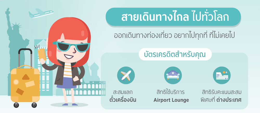 ปัจจุบันนี้ สายการบินชั้นนำส่วนใหญ่มักจะเข้าร่วมเป็นพันธมิตรของบัตรเครดิต เมื่อใช้จ่ายผ่านบัตรฯ จะได้รับคะแนนสะสมตามเงื่อนไขที่กำหนดไว้ เช่น ใช้จ่าย 20 บาท รับ 1 คะแนน โดยคะแนนสะสมนั้นสามารถนำไปแลกเป็นไมล์ของสายการบินต่อได้ เมื่อมียอดไมล์สะสมถึงเกณฑ์ที่แต่ละสายการบินกำหนด จะใช้แลกตั๋วเครื่องบินฟรี ใช้อัพเกรดตั๋วเครื่องบิน หรือใช้แลกของรางวัลอื่นๆ ก็ได้ นอกจากนี้ บัตรเครดิตบางประเภทยังมีบริการ Airport Lounge ที่สนามบินทั้งในและต่างประเทศให้บริการอย่างครอบคลุม ร้านค้าส่วนใหญ่ในต่างประเทศก็สามารถรับการจ่ายเงินผ่านบัตรเครดิตได้ ดังนั้นคุณจึงสบายใจหายห่วง ไม่ต้องพกเงินติดตัวไปเยอะ ลดความเสี่ยงในการสูญหายของเงินสด แถมยังมีสิทธิ์ได้รับคะแนนสะสมพิเศษเพิ่มอีกด้วย (ดูบทความเพิ่มเติม)