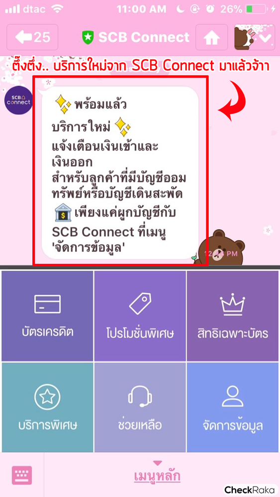 1. มีแจ้งเตือนจาก SCB Connect เกี่ยวกับฟังก์ชั่นใหม่เข้ามา