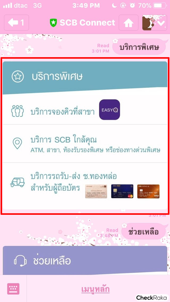 จากเดิมที่มีเพียงบริการค้นหาสาขาธนาคารไทยพาณิชย์ที่อยู่ใกล้คุณ ยังเพิ่มบริการจองคิวล่วงหน้าที่สาขา รวมถึงบริการรถรับ - ส่ง ซ.ทองหล่อ สำหรับลูกค้าที่ถือบัตรเครดิต SCB Private Banking และ SCB FIRST อีกด้วยค่ะ