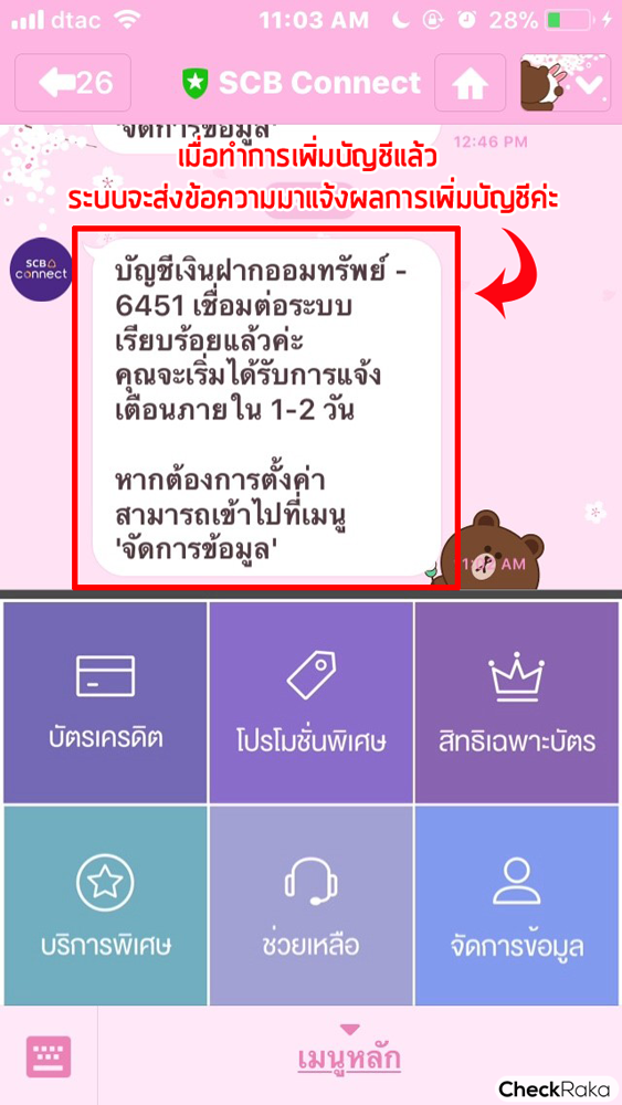 นอกจากจะเช็คข้อมูลบัตรเครดิตได้แล้ว เรายังจะได้รับการแจ้งเตือนเกี่ยวกับข้อมูลบัญชีเงินฝาก (ออมทรัพย์ / เดินสะพัดหรือกระแสรายวัน), บริการพิเศษ และการช่วยเหลือในด้านต่างๆ อีกด้วย วิธีการเพิ่มบัญชีก็มีขั้นตอนง่ายๆ ดังนี้