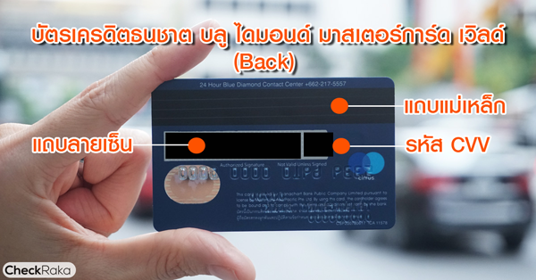ตัวบัตรเป็นสีน้ำเงินเข้มและมีความเป็นประกายของเพชรอยู่ตรงกลาง (สมชื่อ Blue Diamond) หลักๆ แล้วบัตรเครดิตทั้งสองประเภท ก็จะประกอบไปด้วย..