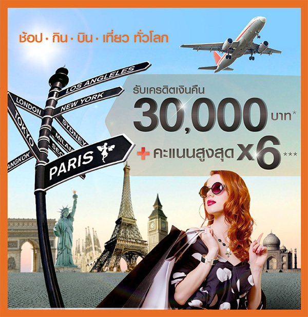 4. ช้อป กิน บิน เที่ยว ทั่วโลก รับเครดิตเงินคืน 30,000 บาท + คะแนนสะสมสูงสุด X6