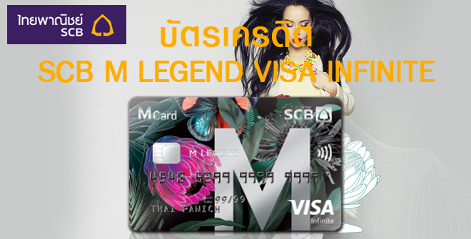มาถึงเจ้าสุดท้ายที่มีบัตรเครดิตระดับหรู นั่นก็คือ ธนาคารไทยพาณิชย์ จำกัด (มหาชน) หรือ SCB มีเครดิตสุดหรูที่เพิ่งเปิดตัวมาใหม่ไม่นาน และต้องได้รับการเรียนเชิญเท่านั้นจึงจะสามารถถือบัตรได้ บัตรเครดิตไทยพาณิชย์ SCB M Legend Visa Infinite บัตรเครดิตซีรีส์ M ร่วมกับห้างสรรพสินค้าชื่อดังอย่าง เครือเดอะมอลล์ กรุ๊ป ซึ่งแน่นอนว่าสิทธิพิเศษ ณ ห้างฯ ดังกล่าว นั้นจะได้รับเต็มๆ ทั้งเรื่องส่วนลดสูงสุด 10% คะแนนสะสม M POINT สูงสุด X4 พร้อมสิทธิพิเศษอื่นๆ อีกมากมาย