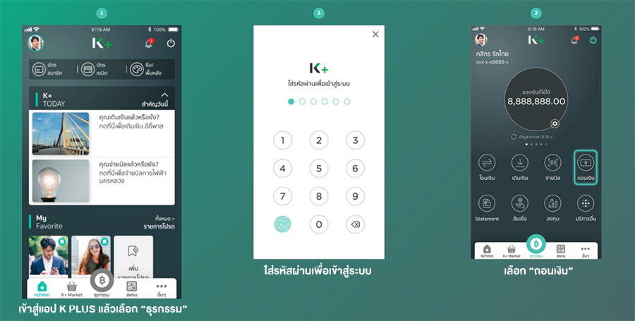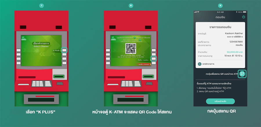 ขั้นตอนการถอนเงินไม่ใช้บัตรผ่าน K PLUS และตู้ K - ATM