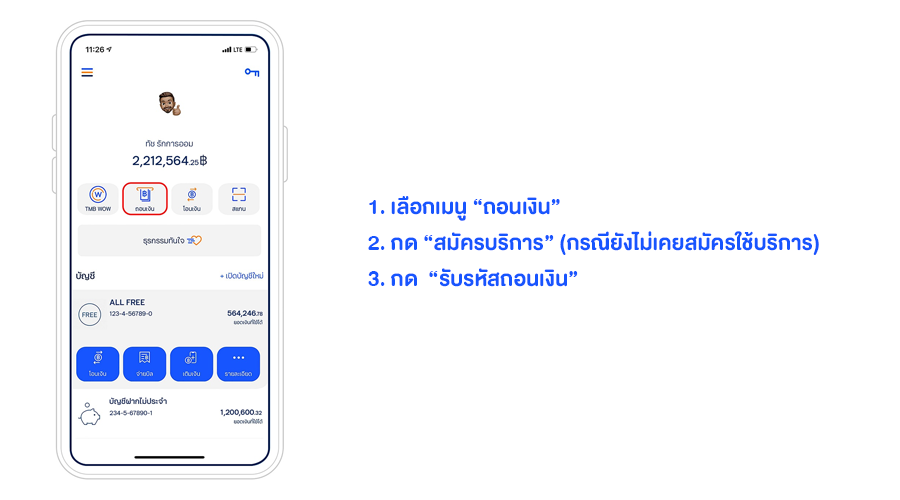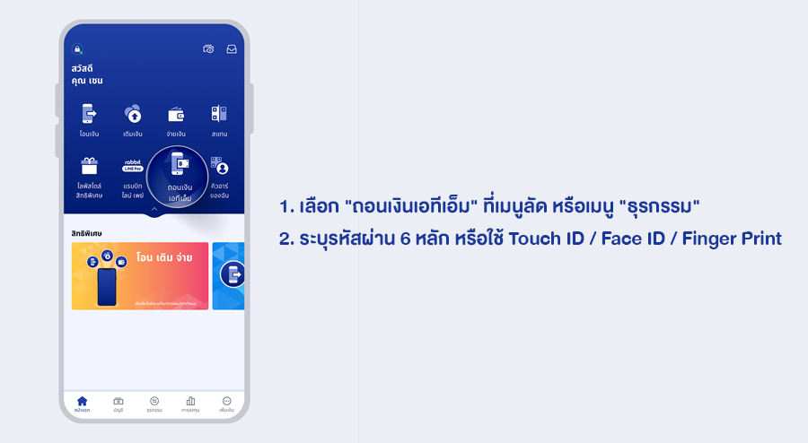 - การถอนผ่านตู้ ATM และรับเงินที่ตู้เลย