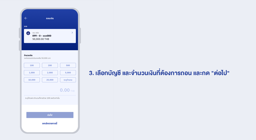 - ถอนได้สูงสุดไม่เกิน 50,000 บาท/ วัน