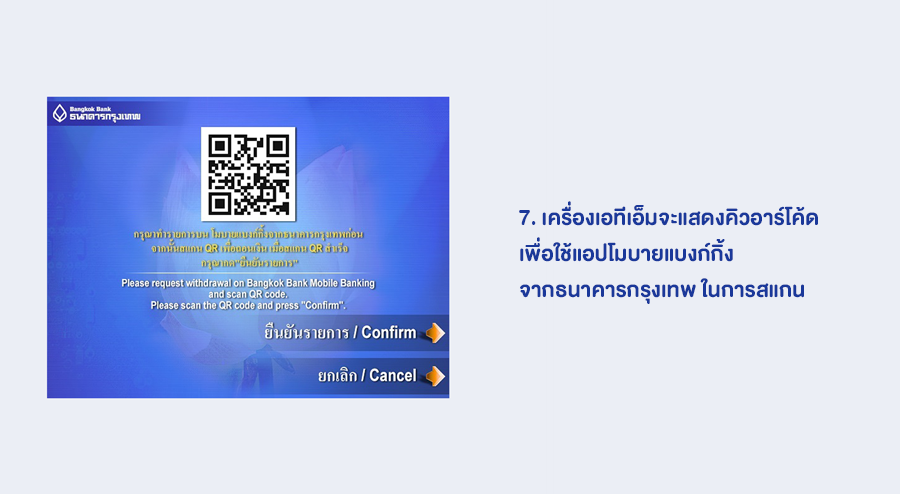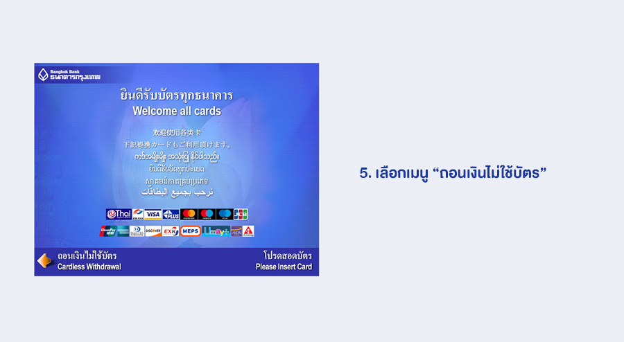 ขั้นตอนการถอนเงินไม่ใช้บัตรของธนาคารกรุงเทพ