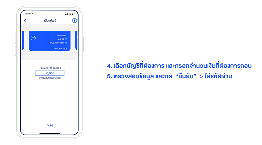 - ถอนได้ไม่เกิน 20,000 บาท/ ครั้ง