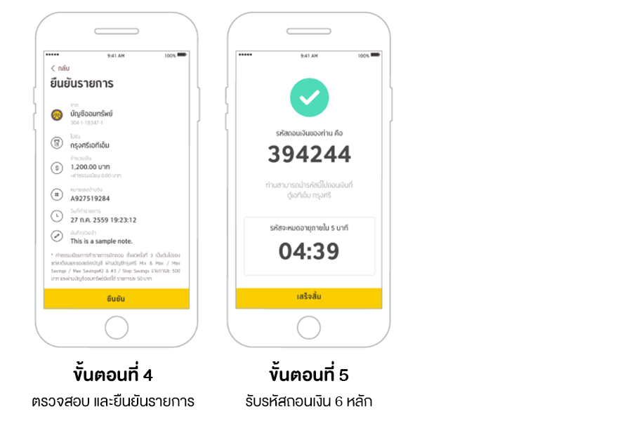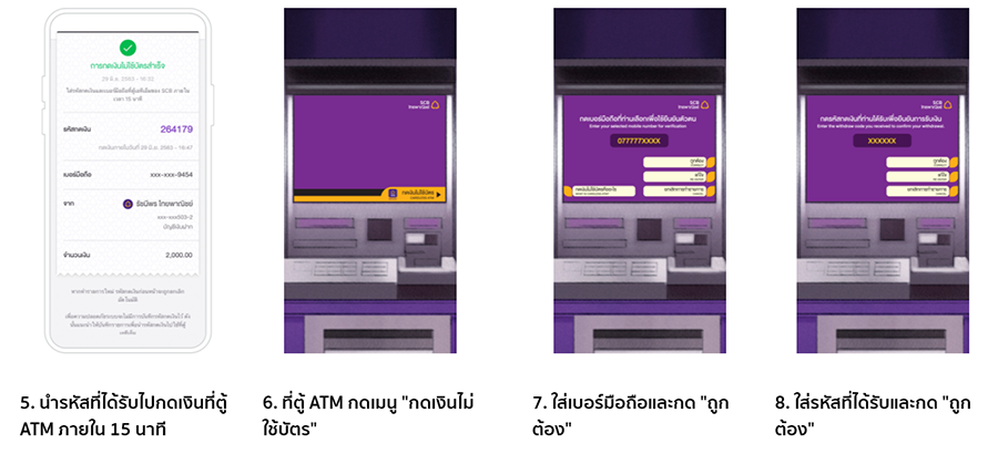 - รหัสถอนเงินที่ได้รับ มีอายุการใช้งาน 15 นาที นับตั้งแต่ได้รับรหัส