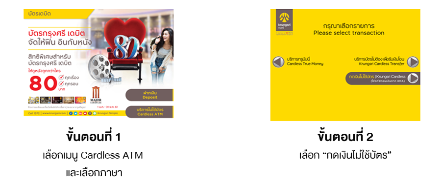 ขั้นตอนการถอนเงินไม่ใช้บัตรที่ตู้เอทีเอ็มกรุงศรี