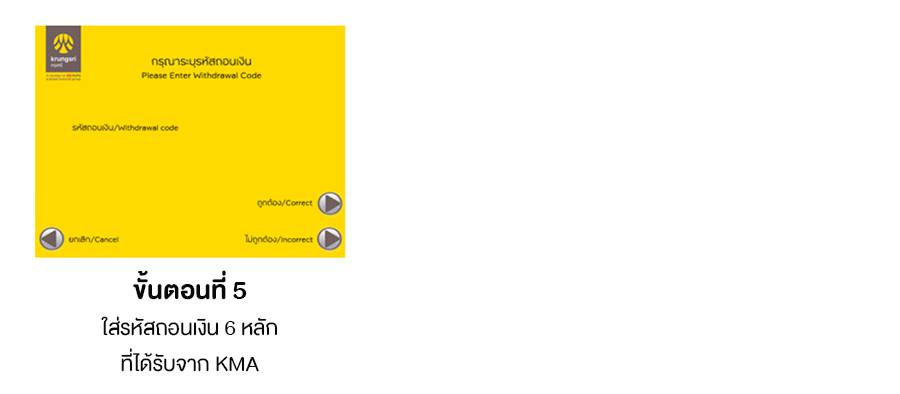 - รหัสถอนเงินมีอายุการใช้งาน 5 นาทีนับจากทำรายการผ่าน KMA