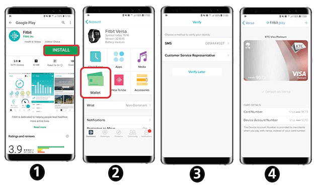 Application "Fitbit Pay" สามารถติดตั้งง่ายๆ เพียงดาวน์โหลดแอปพลิเคชันผ่านทาง App Store และ Play Store ตามขั้นตอนด้านล่างนี้