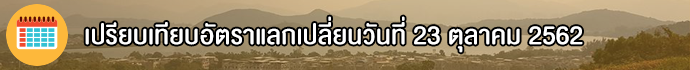 อัตราแลกเปลี่ยนของวันที่ 23 ตุลาคม 2562 (กรณีที่เราต้องการไปแลกเงิน ต้องดูที่ด้าน "Selling" หรือ "ราคาแลกซื้อ") อัตราแลกเปลี่ยนสกุลเงิน HKD ยังคงลดลงเรื่อยๆ จากเมื่อต้นเดือนค่ะ แต่ลดลงไม่มากนัก สำหรับของ TMB All Free อัตราแลกเปลี่ยนอยู่ที่ 3.868312 และอัตราแลกเปลี่ยนของ Superrich อยู่ที่ 3.87 ค่ะ ซึ่งแนวโน้มก็ลดลงทั้ง 2 ที่ แต่อัตราแลกเปลี่ยนของ Superrich ยังสูงกว่าของ TMB All Free ค่ะ
